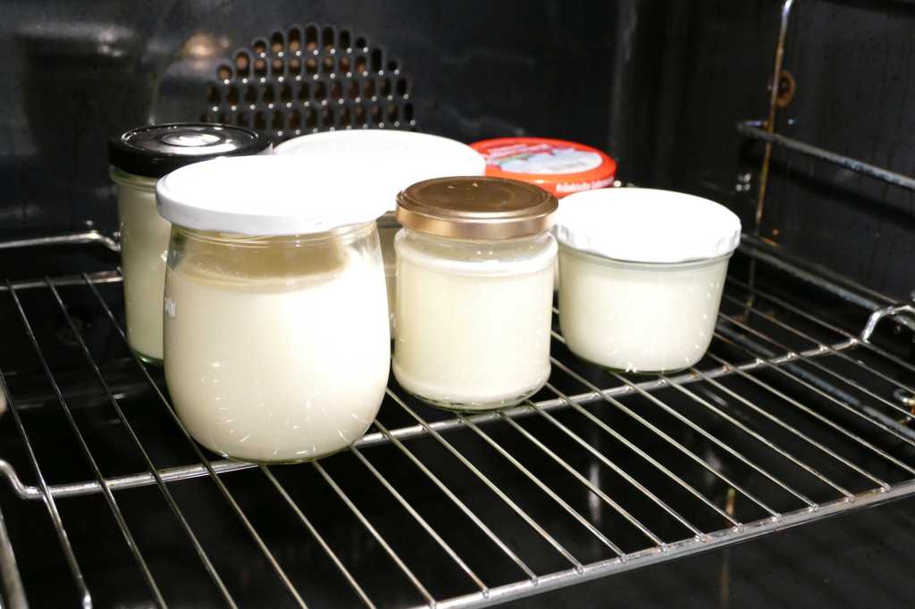 Den Joghurt verrührt ihr mit der Milch und fühlt dies in die Gläser. Ich lasse immer etwas Platz im Glas, da ich in den fertigen Joghurt oft Marmelade/Früchte/Nüsse/etc. einrühre und das dann deutlich einfacher geht. Dann stellt ihr die Gläser bei 40 °C für 10-12 Stunden in den Ofen. Fertig 🙂